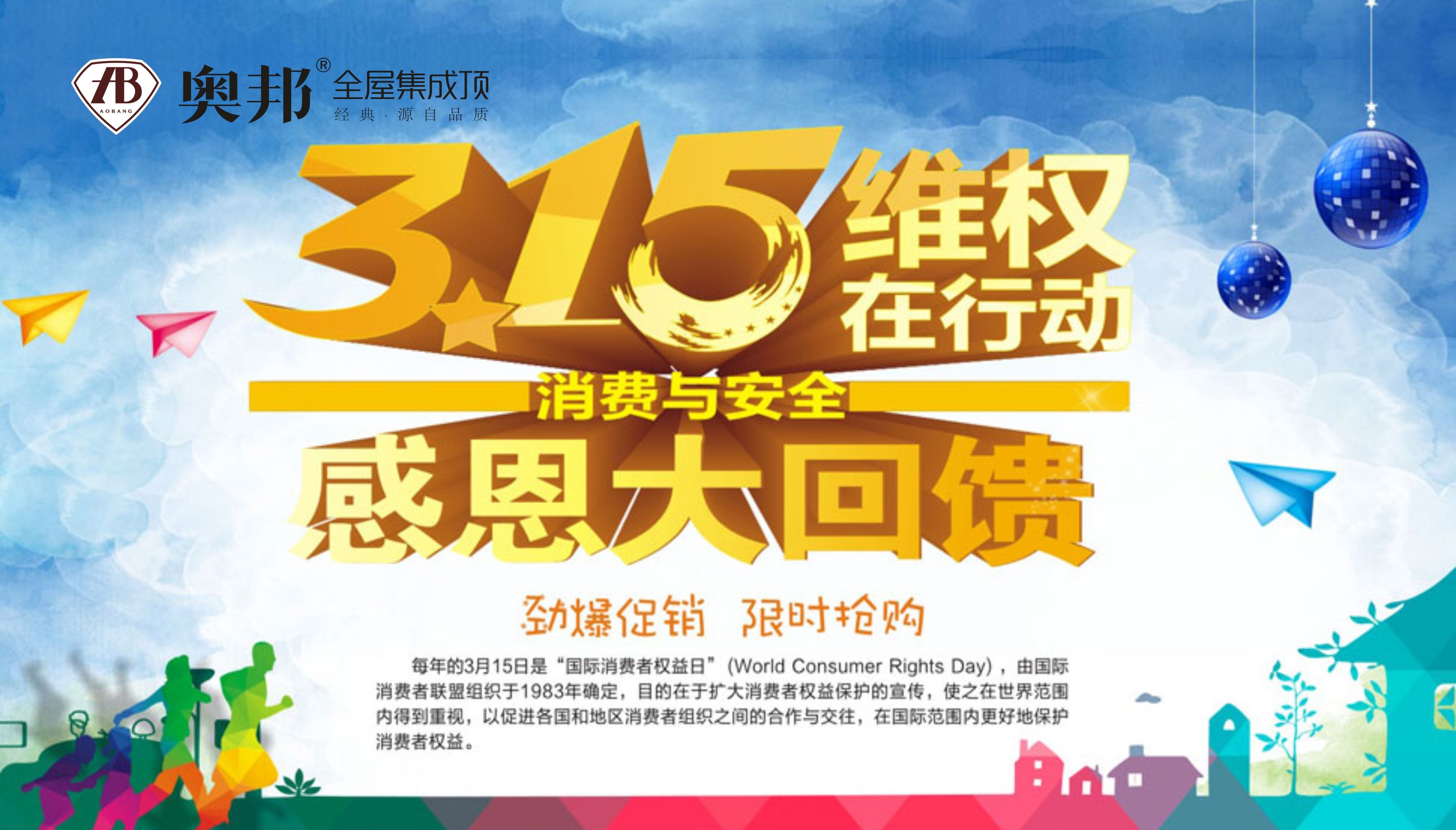 對(duì)于315,奧邦全屋集成頂有話說:嚴(yán)厲打擊假冒偽劣產(chǎn)品,維護(hù)消費(fèi)者合法權(quán)益,推動(dòng)家居行業(yè)健康向前發(fā)展!嚴(yán)格固守品質(zhì),規(guī)范用材用料標(biāo)準(zhǔn),優(yōu)選綠色環(huán)保原料,拒絕不合格原材料,為消費(fèi)者提供健康、舒適的家居產(chǎn)品!