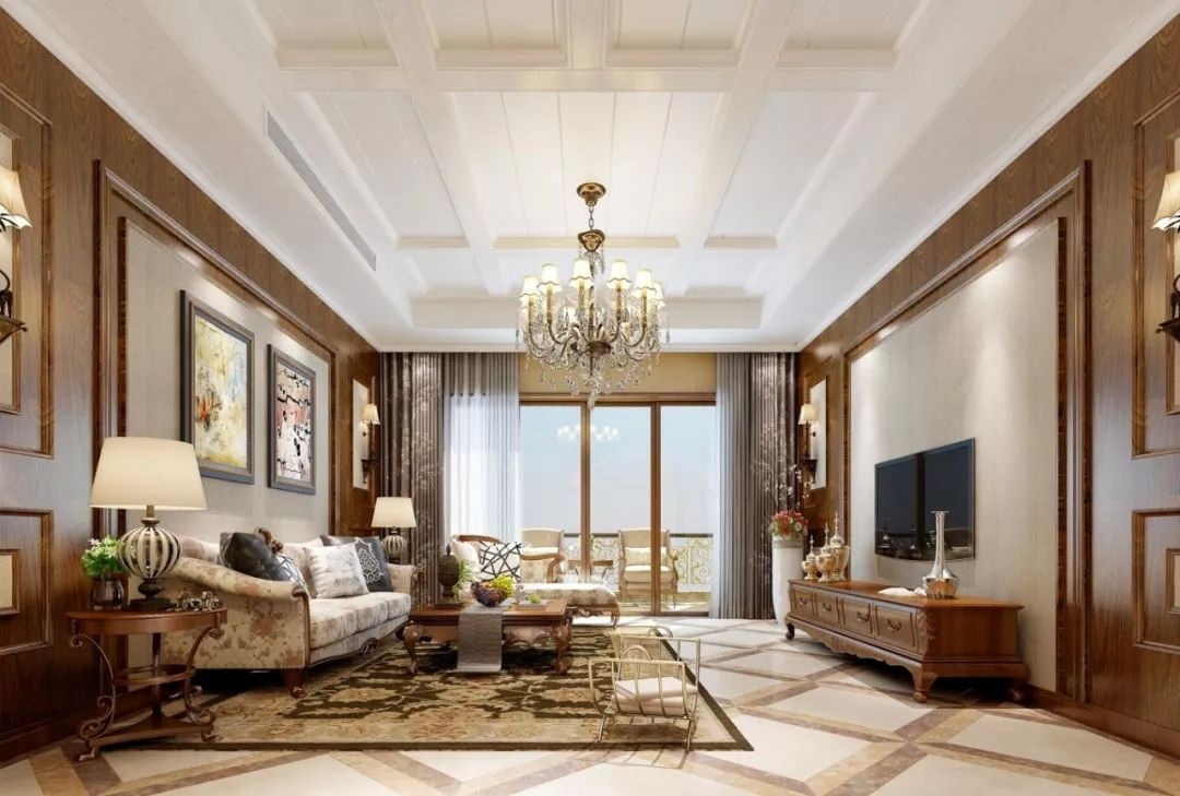 (奧邦美式風格客廳吊頂&沙發背景墻&電視背景墻)