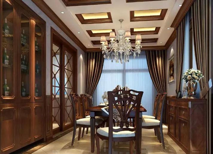 (奧邦美式風格客餐廳吊頂&電視背景墻)