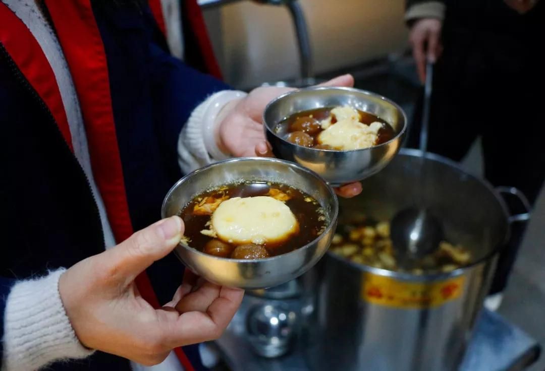 大家在有序的隊(duì)伍中已經(jīng)樂呵的合不攏嘴了,還沒吃就感受到甜與溫暖了吧!